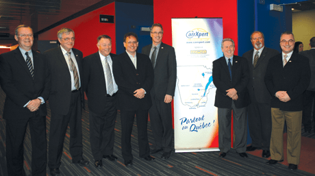 Quelques membres de l’équipe : Jean Cadoret, relationniste de la CCAQ; Pierre Joncas, chargé de projet Contrôle de la qualité et Formation CarrXpert; Michel Côté, directeur du Développement réseau CarrXpert; Pierre Voyer, consultant; François Brunet, directeur de territoire et conseiller en gestion d’ateliers CarrXpert; Aimé St-Martin, directeur de territoire et conseiller en gestion d’ateliers CarrXpert; Maurice Roy, vice-président Développement des produits et services CarrXpert; et Robert Favreau; directeur de territoire – conseiller en gestion d’atelier et contrôle de la qualité CarrXpert.