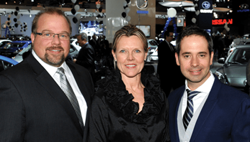 Denis Dessureault, vice-président exécutif de la CCAM; Claudine Vachon, directrice exécutive du Salon international de l’auto de Montréal; et José Gaudet, porte-parole de l’Avant-Première Bénéfice 2012.