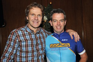 Mario Champagne, chef de la Direction du Groupe PPP et commanditaire du dîner de Noël, a présenté le nouveau projet de La Boucle 2014 aux concessionnaires qui s’étaient déplacés pour l’événement. Il faut rappeler que Mario Champagne avait invité tous ses employés en 2013 à effectuer La Boucle 2013 du Grand Défi Pierre Lavoie avec lui. Un défi qui s’est révélé un immense succès et qui, cette année, s’exporte à une plus grande échelle en visant l’industrie de l’automobile par l’entremise de la Corporation des concessionnaires d’automobiles du Québec (CCAQ) avec La Capitale comme partenaire financier.