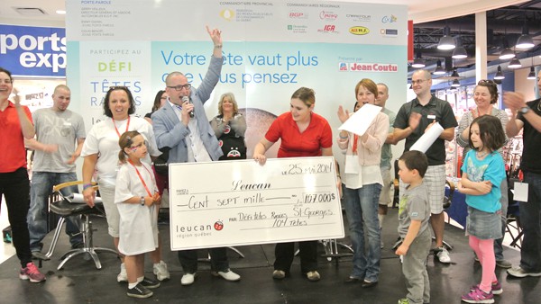 Lors du Défi têtes rasées Leucan, présenté par Jean Coutu le dimanche 25 mai, 104 braves membres de la population de Saint-Georges de Beauce se sont fait raser les cheveux pour soutenir les enfants atteints de cancer. Leur geste a permis d’amasser 107 000$ dans la région.