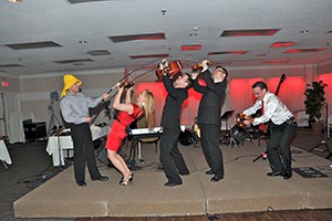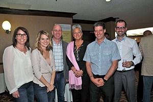 Michel Caron, Pierre Boisvert, Gilles Lachapelle, Ronald Lavertu et Rémi Arbour, accompagnés de leur épouse.