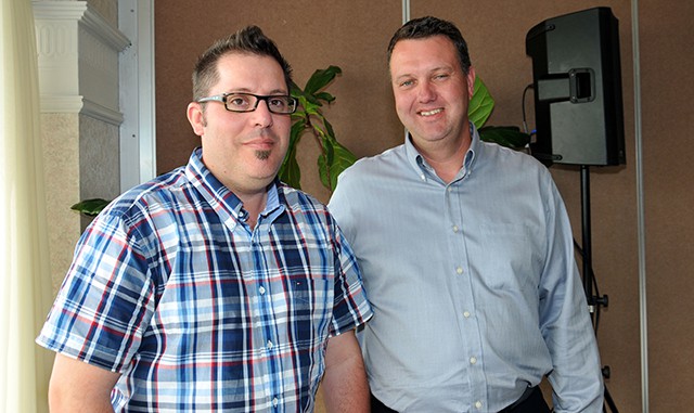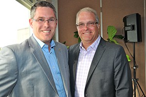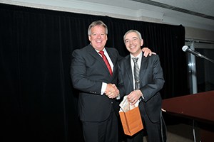 Richard Michaud, secrétaire, CCAEQ ; Francis Lamontagne, président du C.A. de la CCAQ ; Richard Beaulieu, président, CCAEQ ; et Jacques Béchard, président-directeur général de la CCAQ, à la suite de l’assemblée générale annuelle