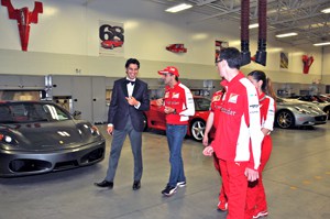 Quelques membres de l’équipe Ferrari présents à Montréal à l’occasion du Grand Prix du Canada sont venus faire une visite de la concession et de l’atelier ; parmi ceux-là, mentionnons Marc Gené et Esteban Gutiérrez, pilotes d’essai pour Ferrari, et Maurizio Arrivabene, directeur général de la gestion sportive, qui ont adressé quelques mots aux invités.