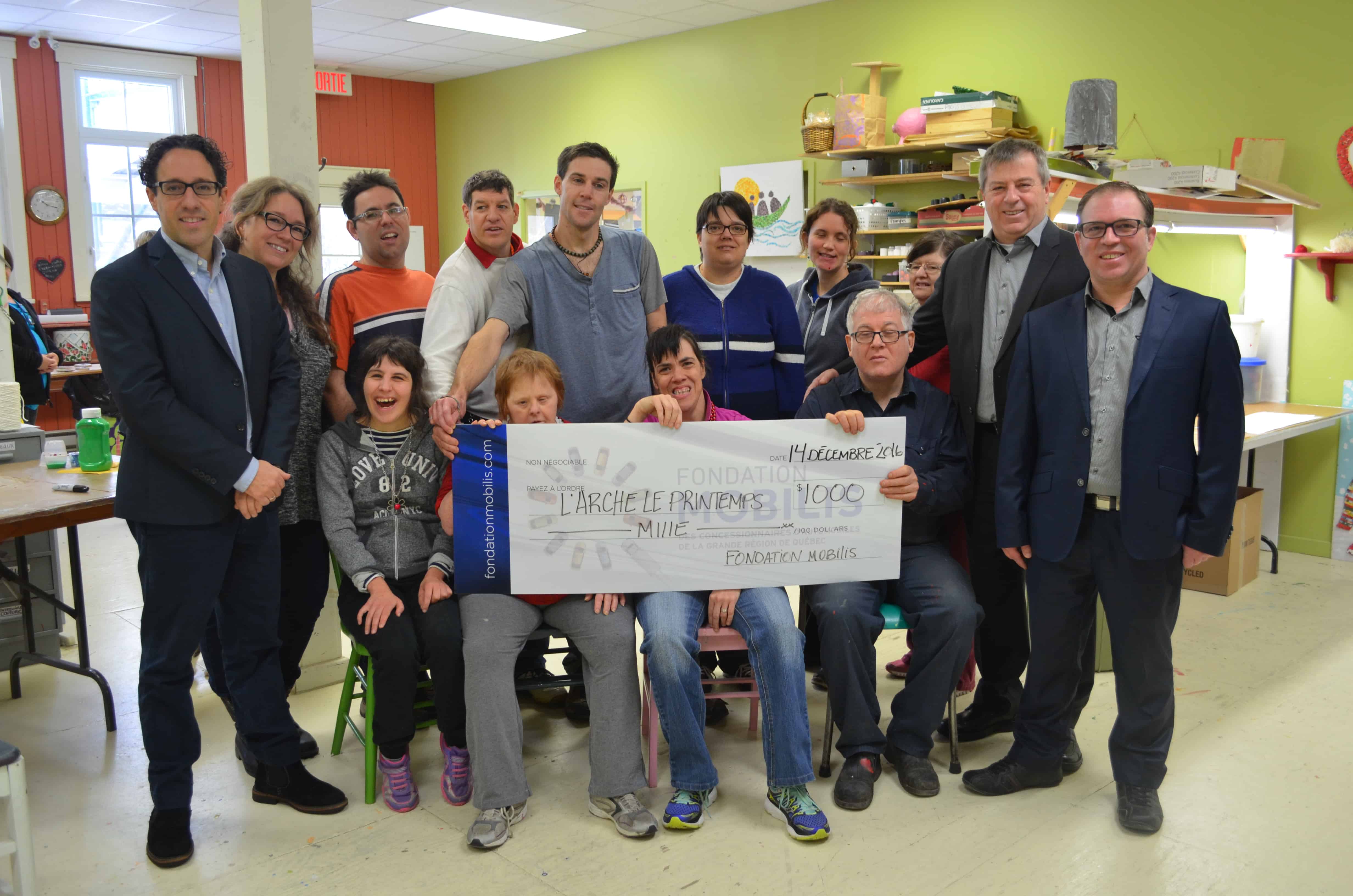 L’Arche le Printemps, qui offre trois foyers pour des personnes vivant avec une déficience intellectuelle (les Érables, la Colline et le Ruisseau), a reçu un don de 1000 $ de la concession Daniel Paré Dodge Chrysler de Saint-Malachie, via la Fondation Mobilis.