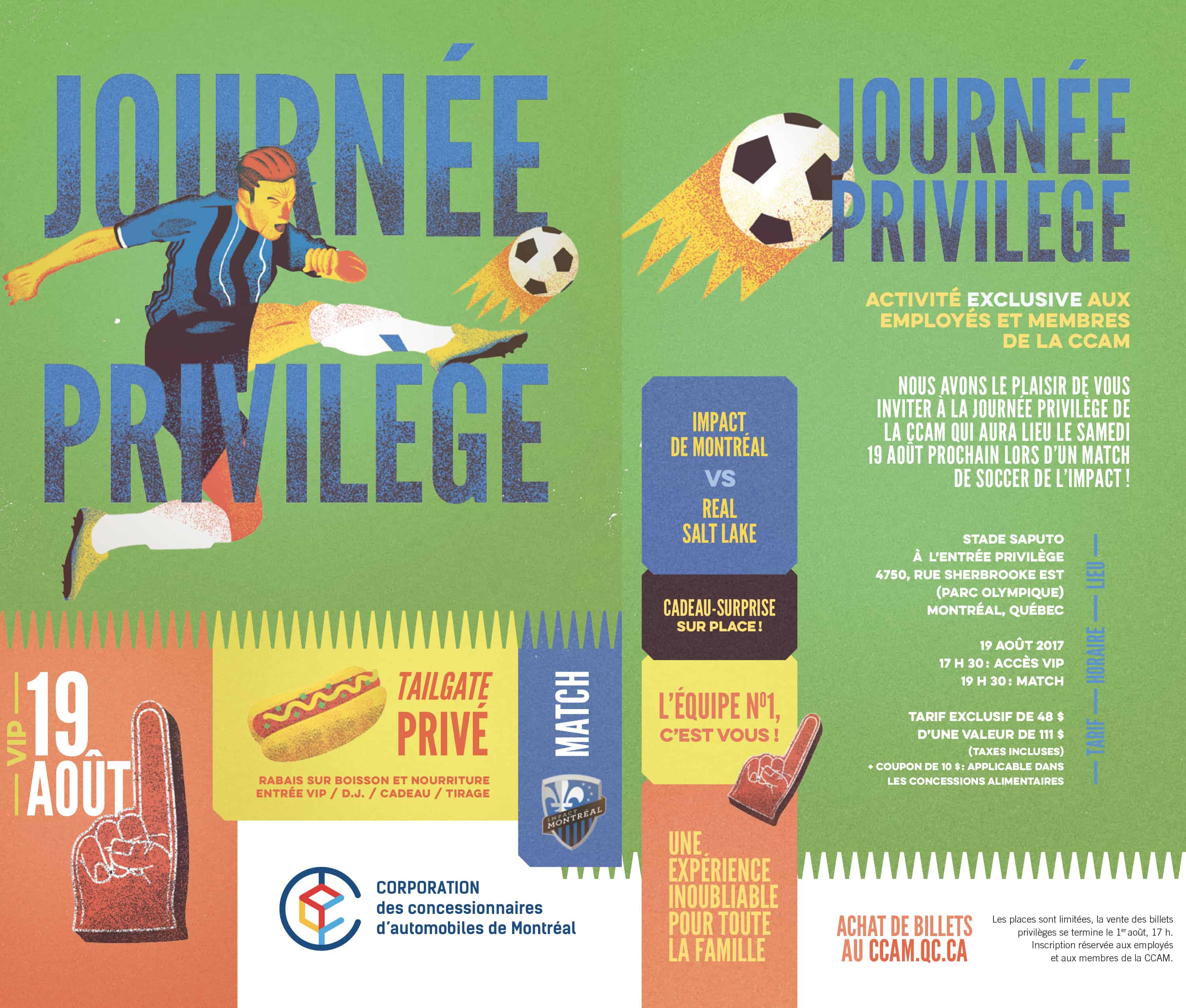 La Corporation des concessionnaires d’automobiles de Montréal (CCAM) est heureuse d’inviter ses membres à la journée privilège annuelle. Cette année, le soccer est en vedette…