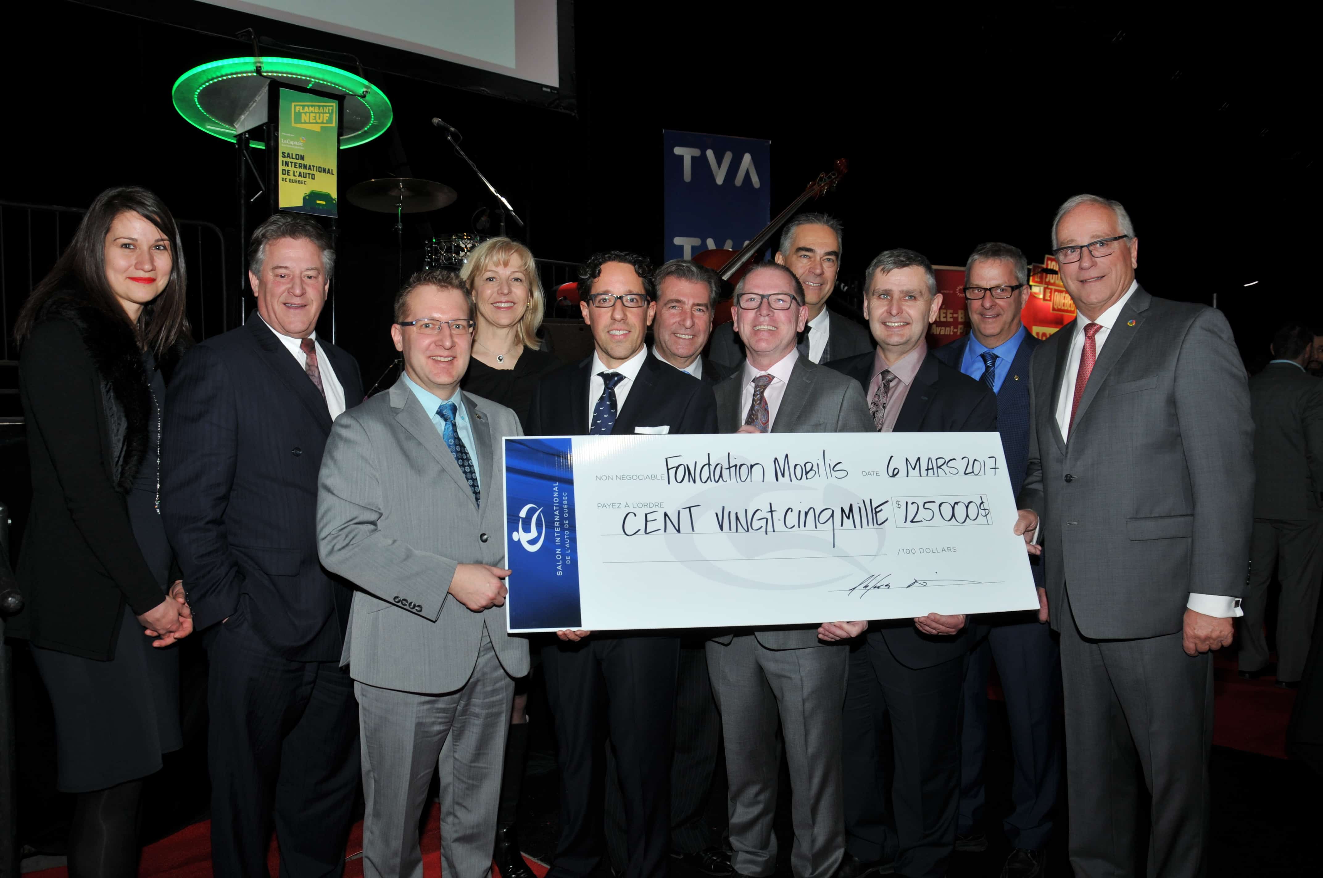 C’est M. Claude Plamondon, président de ce 36e Salon international de l’auto de Québec, qui a eu l’honneur de révéler le montant du chèque amassé lors de cette 14e soirée, une somme qui ira directement à la Fondation Mobilis. « C’est un événement qui permet à la Fondation de continuer sa mission », a d’ailleurs mentionné à ce sujet M. Yves Watier, président du Cercle des gouverneurs, lors d’une brève allocution. M. Plamondon a dévoilé un chèque de quelque 125 000 $. Comme il y avait quelque 850 convives, ce montant représente un record inégalé. À noter que La Capitale Assurances générales a également remis un montant de 20 000 $ à la Fondation.