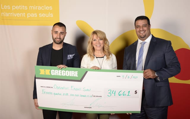 «Chez HGrégoire, nous souhaitons rester engagés dans notre communauté en nous mobilisant pour des causes qui nous tiennent à cœur. C’est avec fierté, et avec la collaboration des internautes, que nous remettons ce chèque de 34 661 $ à l’occasion du 30e anniversaire d’Opération Enfant Soleil», John Hairabedian, président.