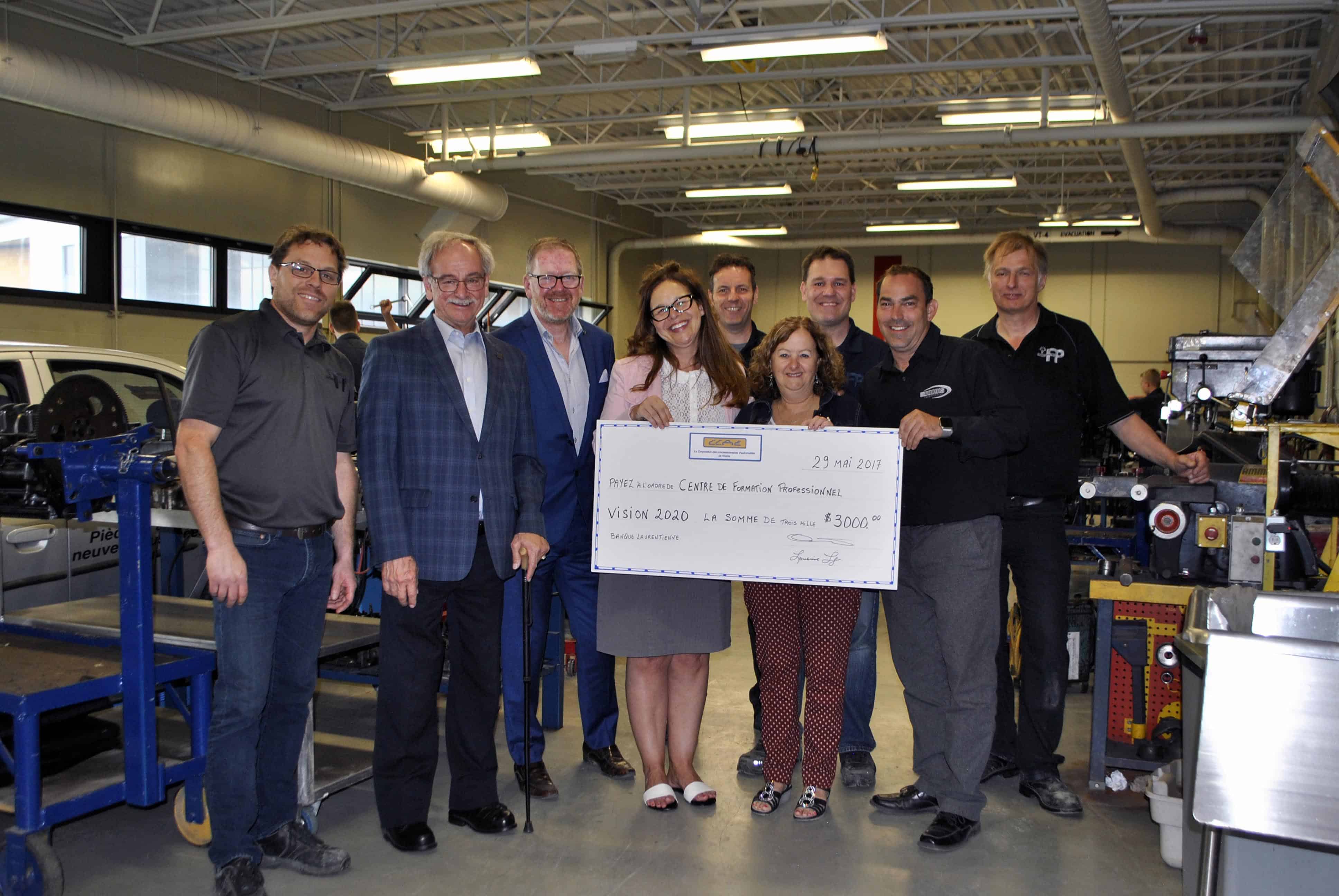Le 29 mai dernier, dans les locaux du programme de mécanique automobile du Centre de formation professionnelle Vision 20 20, de Victoriaville, les représentants de la CCAE (Corporation des concessionnaires d’automobiles de la Mauricie) ont remis un chèque de 3 000 $.