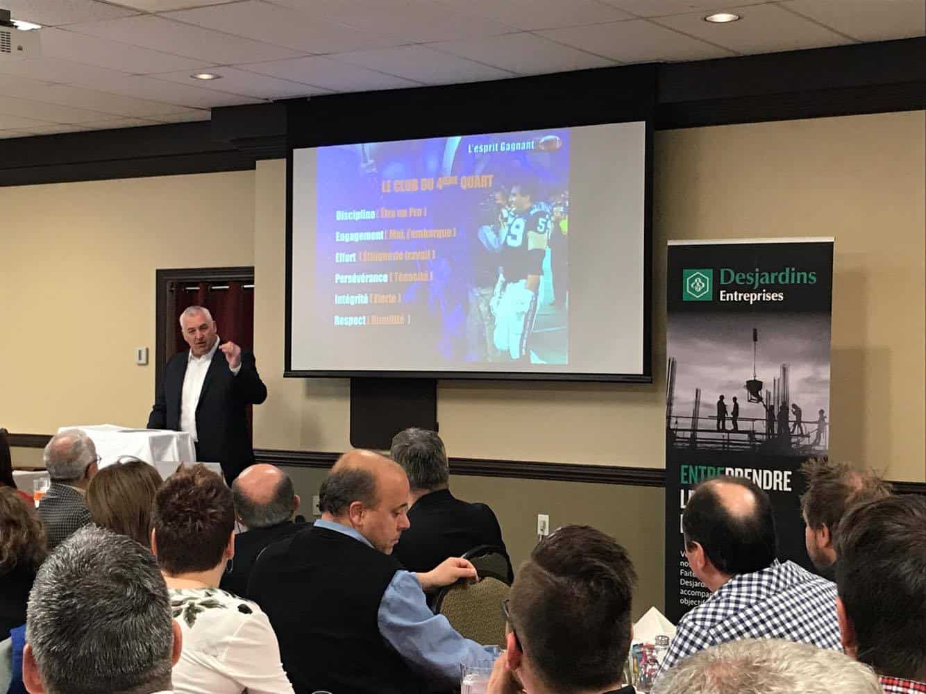 Le 12 mai dernier, à Montmagny, l’équipe de Desjardins a organisé une matinée consacrée au réseautage avec un invité de marque, soit M. Pierre Vercheval, conférencier, ancien athlète de football, membre du Panthéon des sports du Québec en plus d’être analyste du football pour la chaîne RDS.
