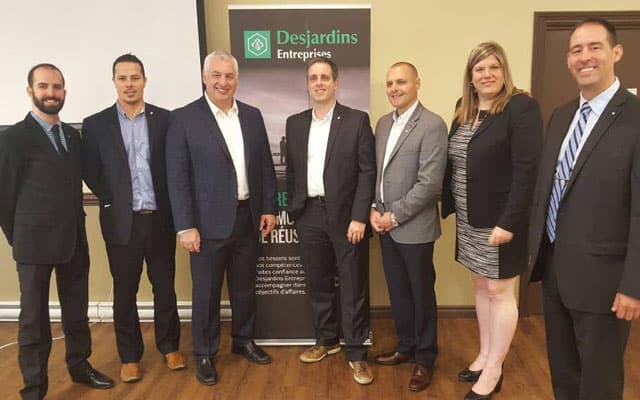 Pierre Vercheval, conférencier invité, entouré de l’équipe Desjardins