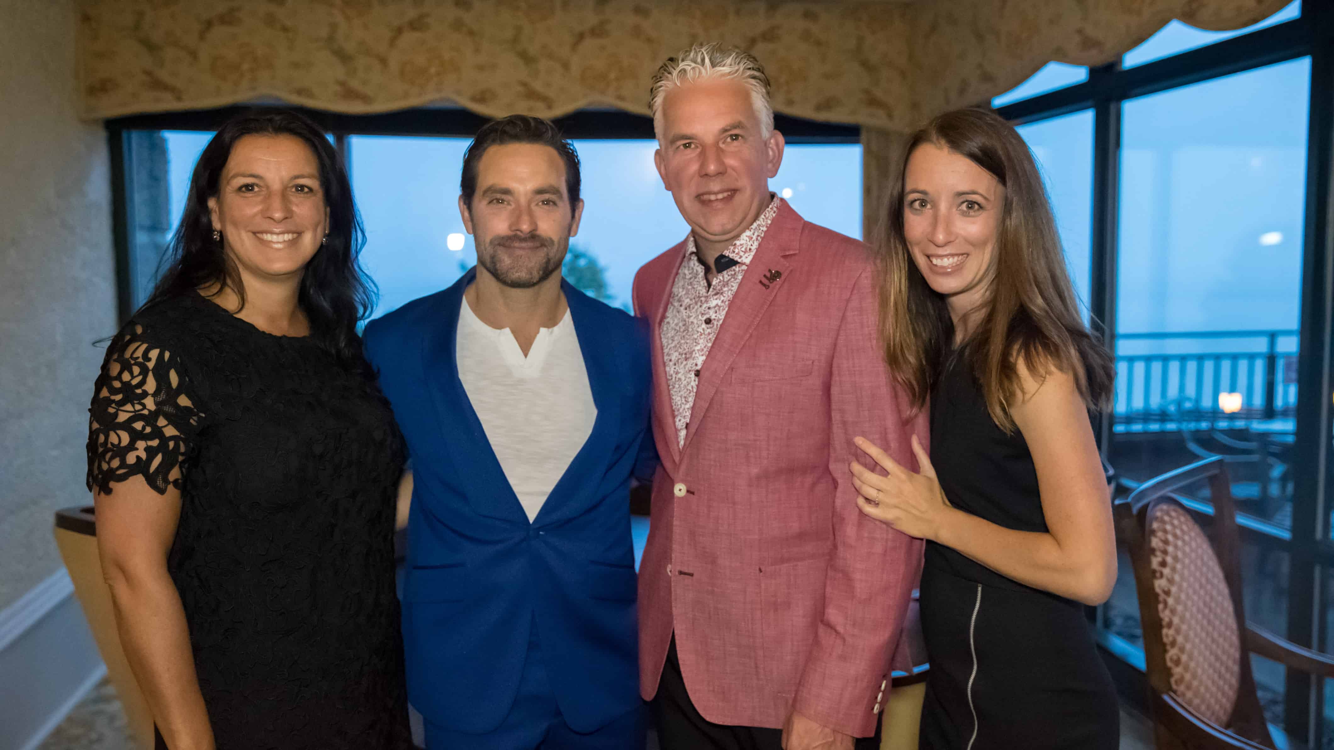 Nathalie Matte, directrice multirégionale et développement philanthropique à Leucan, Guillaume Lemay-Thivierge, Sébastien Thibeault, propriétaire de Hyundai JR Thibeault et Julie Maynard, chargée de projets au développement philanthropique à Leucan (Crédit photo : Go-Xplore.com)