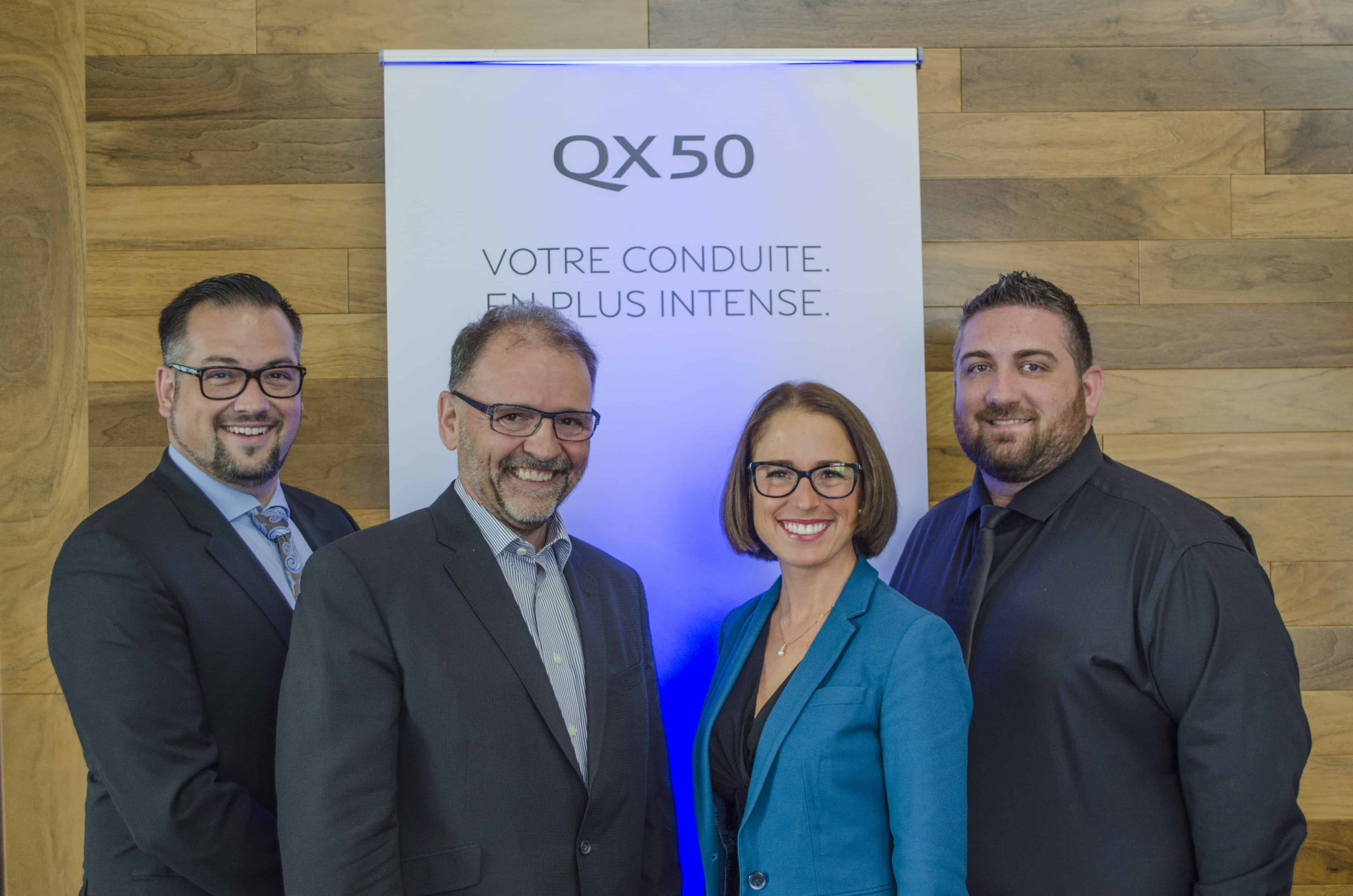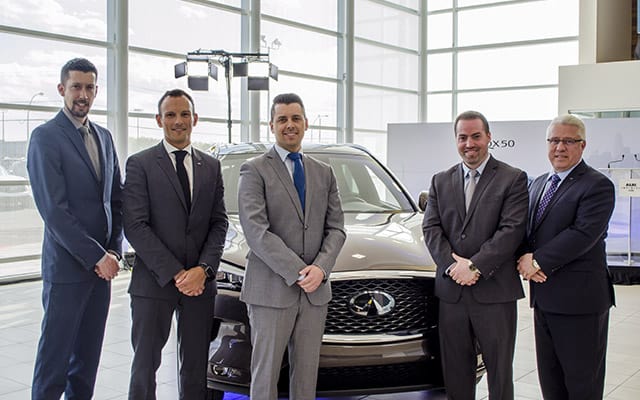 Jocelyn Brière, vice-président des ventes, ALBI le Géant, Adam Paterson, directeur général, Infiniti Canada, Nicolas Sigouin, vice-président des ventes, ALBI le Géant, Philippe Venne, vice-président des ventes, ALBI le Géant, Anthony Di Domenico, directeur des opérations, Canada Est, Infiniti Canada.