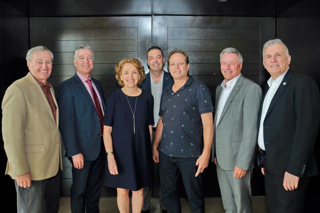 Lise Roy, présidente-directrice générale par intérim de la CCAQ, entourée des membres du Conseil d’administration : Michel Gaudette, vice-président, Gilles Poirier, président, Guy Duplessis, président sortant, Michel Rousseau, délégué de la Corporation régionale de l’Estrie, et René Boivin PDG de novo SST.