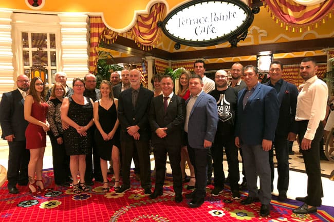 Les gagnants en compagnie du président des Entrepôts A.B., Patrick Bertrand, lors du souper VIP au restaurant Terrace Pointe Café de l’hôtel Wynn.