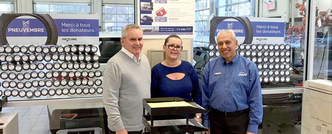 Cette année, la campagne PNEUVEMBRE offre un concours destiné aux conseillers techniques des concessionnaires automobiles. Du 15 octobre au 1er décembre 2018, les entreprises participantes sont invitées à solliciter leurs clients à faire un don à PROCURE par l’ajout d’un montant de 4 $ à leur facture, soit 1 $ par pneu changé.