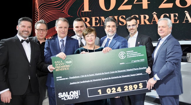 La Corporation des Concessionnaires d’Automobiles de Montréal (CCAM) et le Palais des congrès de Montréal, en collaboration avec le Journal de Montréal, sont fiers d’avoir remis un chèque de 1 024 289 $. Un montant qui viendra en aide à six fondations hospitalières du Grand Montréal.