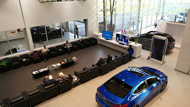 L’agenda réglé au quart de tour permet aussitôt aux conseillers techniques de prendre le relais et de faire le tour du véhicule en compagnie du client. C’est vers un confortable salon entièrement repensé, un environnement d’attente aménagé avec soin, où l’on trouve notamment un foyer, que le client est ensuite dirigé. « Cette pièce et son décor font oublier, l’espace d’un moment, l’envergure de l’entreprise. Elle transmet la singularité des vertus familiales qui animent le cœur de l’entreprise », explique Joëlle Lambert.