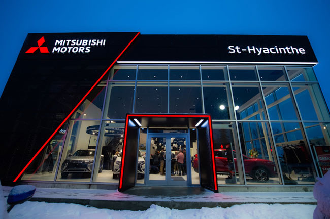 Saint-Hyacinthe Mitsubishi a ouvert ses portes en 2005 en tant qu’un des premiers concessionnaires Mitsubishi Motors au Québec, et il est maintenant un des principaux concessionnaires d’Outlander PHEV au pays. Durant la construction et l’expansion qui ont duré 10 mois, l’établissement a conservé son aire des ventes, avant que finalement le bâtiment précédent ne soit démoli. Ce concessionnaire compte désormais une superficie de 11 000 pi2, dont un portail de service, soit le double de la superficie de son emplacement précédent. Il comprend 10 bornes de recharge électriques pouvant être utilisées par les clients et les propriétaires de VÉ. Saint-Hyacinthe Mitsubishi a agrandi son équipe qui se compose désormais de 20 employés.