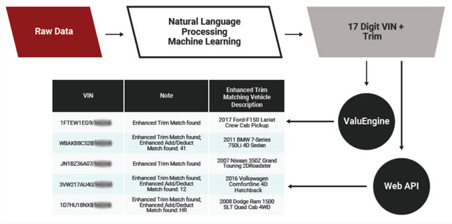Ce service a été baptisé Enhanced Vehicle Matching (EVM). L’EVM exploite l’intelligence artificielle (IA) et les grands volumes de données pour analyser des centaines de milliers de certificats d’immatriculation par jour, à partir de nombreuses sources, créant ainsi un processus permettant de jumeler avec précision les NIV à 17 chiffres à un seul niveau de précision. À l’heure actuelle, environ 30 % des NIV ne sont pas décodés à un seul niveau, ce qui nécessite une interaction manuelle et des ajustements de la valeur estimée. L’EVM offre aux concessionnaires, aux prêteurs et aux assureurs une plus grande précision d’évaluation par rapport aux techniques actuelles de décodage des NIV.