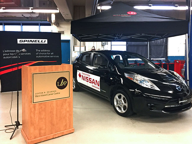 L’importance croissante des véhicules électriques au Canada et, même, à l’échelle mondiale, était évidente le 5 décembre 2019 lorsqu’une Nissan Leaf d’une valeur de 20 000 $ a été remise au programme de mécanique automobile du Centre de formation professionnelle West Island (CFPWI) à Montréal, au Québec.