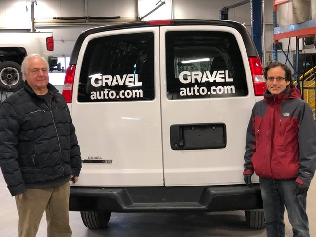 Jean-Claude Gravel, de Gravel auto.com, a prêté un fourgon GMC Savana au Centre communautaire Dawson pour permettre au personnel de faire la distribution alimentaire à 180 familles et aînés de Verdun. Le gestionnaire du Centre, Marc Paradis, a tenu à remercier en personne Jean-Claude Gravel et son équipe pour ce geste.