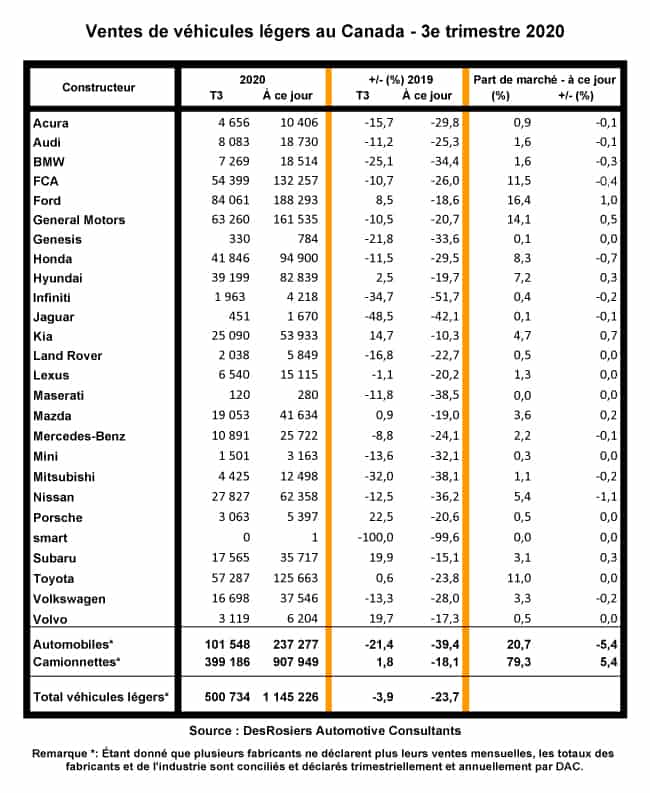 Il convient de noter que les chiffres de ventes rapportés ici sont conciliés trimestriellement par DesRosiers Automotive Consultants (DAC) sur la base des ventes déclarées par les fabricants.