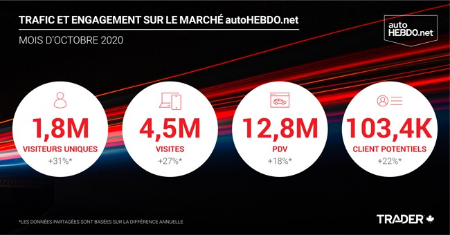 L’entreprise autoHEBDO vient tout juste de publier son tout dernier rapport de trafic et d’engagement sur le marché. Il s’agit des données du mois d’octobre dernier.