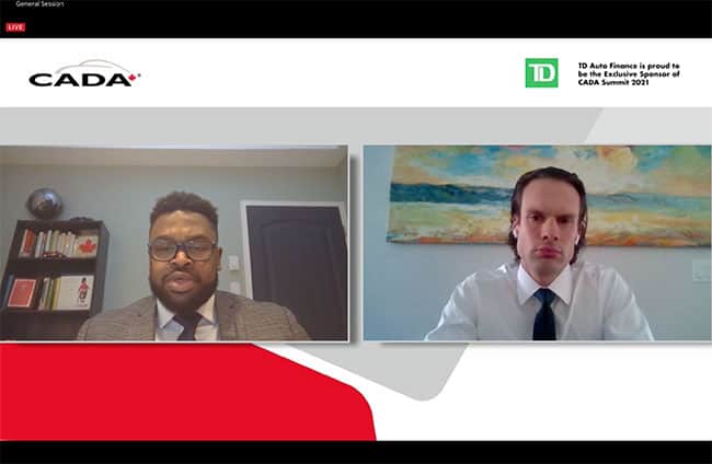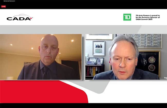 Le président de la CADA, Trevor Boquist, a fait quelques brèves remarques et fait une présentation provinciale des salutations vidéo de dirigeants d’associations de concessionnaires provinciales d’un océan à l’autre. Cela a ajouté une certaine légèreté et un sentiment de collectivité à un moment où les participants, pour la plupart, assistaient probablement au Sommet de leur domicile ou d’entreprises fonctionnant en plein confinement.