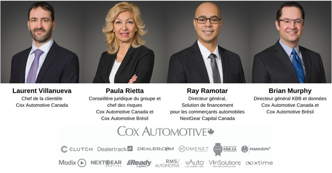 L’équipe de Cox Automotive Canada est heureuse d’accueillir quatre nouveaux membres dans leur équipe de direction. Il s’agit de Laurent Villanueva, Paula Rietta, Ray Ramotar et Brian Murphy. Ces quatre chefs de file de l’industrie se rapporteront à Maria Soklis, présidente de Cox Automotive Canada et Brésil.