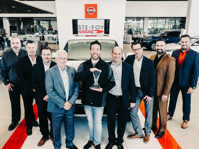 C’est avec une immense fierté que Carl Latulippe, directeur général de Ste-Foy Nissan, et toute son équipe ont récemment reçu le PRIX D’EXCELLENCE 2020 de Nissan Canada. Il s’agit de la plus haute distinction attribuée aux 20 meilleures concessions Nissan au Canada sur plus de 200. Ste-Foy Nissan figure d’ailleurs parmi les quatre seules concessions Nissan du Québec et la seule de la région de Québec à mériter ce prix au cours de l’année.