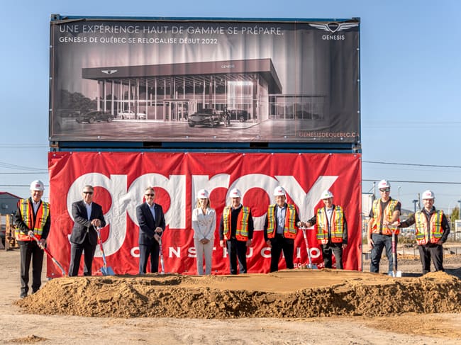 Le 6 octobre dernier, le Groupe Daigle, le plus important groupe de concessions de Québec, a officiellement lancé le début des travaux de la construction du tout nouvel immeuble de Genesis de Québec. Ces travaux représentent un investissement de 5,5 millions de dollars et devraient être terminés à la fin de mars 2022.
