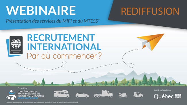 Le 29 septembre dernier, CSMO-Auto a organisé un webinaire d’information pour aider les employeurs de l’industrie des services automobiles à mieux connaître les services offerts par le ministère de l’Immigration, Francisation et Intégration (MIFI) et le ministère du Travail, de l’Emploi et de la Solidarité sociale (MTESS) en ce qui concerne le recrutement international.