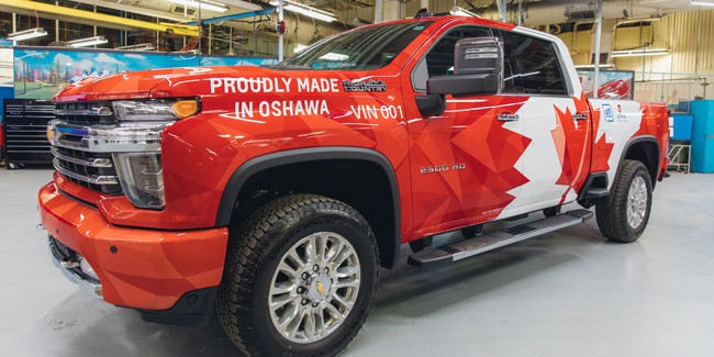 GM Canada a organisé un concours pour les concessions afin de pouvoir acheter la première camionnette sortie de la chaîne d’assemblage d’Oshawa, amassant 125 000 $ pour l’ACAF grâce à des dons de 163 concessions GM. Le concessionnaire gagnant est Paillé Chevrolet Buick GMC à Berthierville (Québec) qui prendra livraison du NIV 001 en janvier – un Silverado HD High Country 2022 blanc avec graphiques exclusifs « NIV 001 ».
