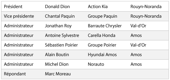 Le conseil d’administration de la CCANO : Marc Moreau, Michel Dion, Donald Dion, Sébastien Poirier, Chantal Paquin et Antoine Sylvestre. Absent : Alain Boutin et Jonathan Roy.