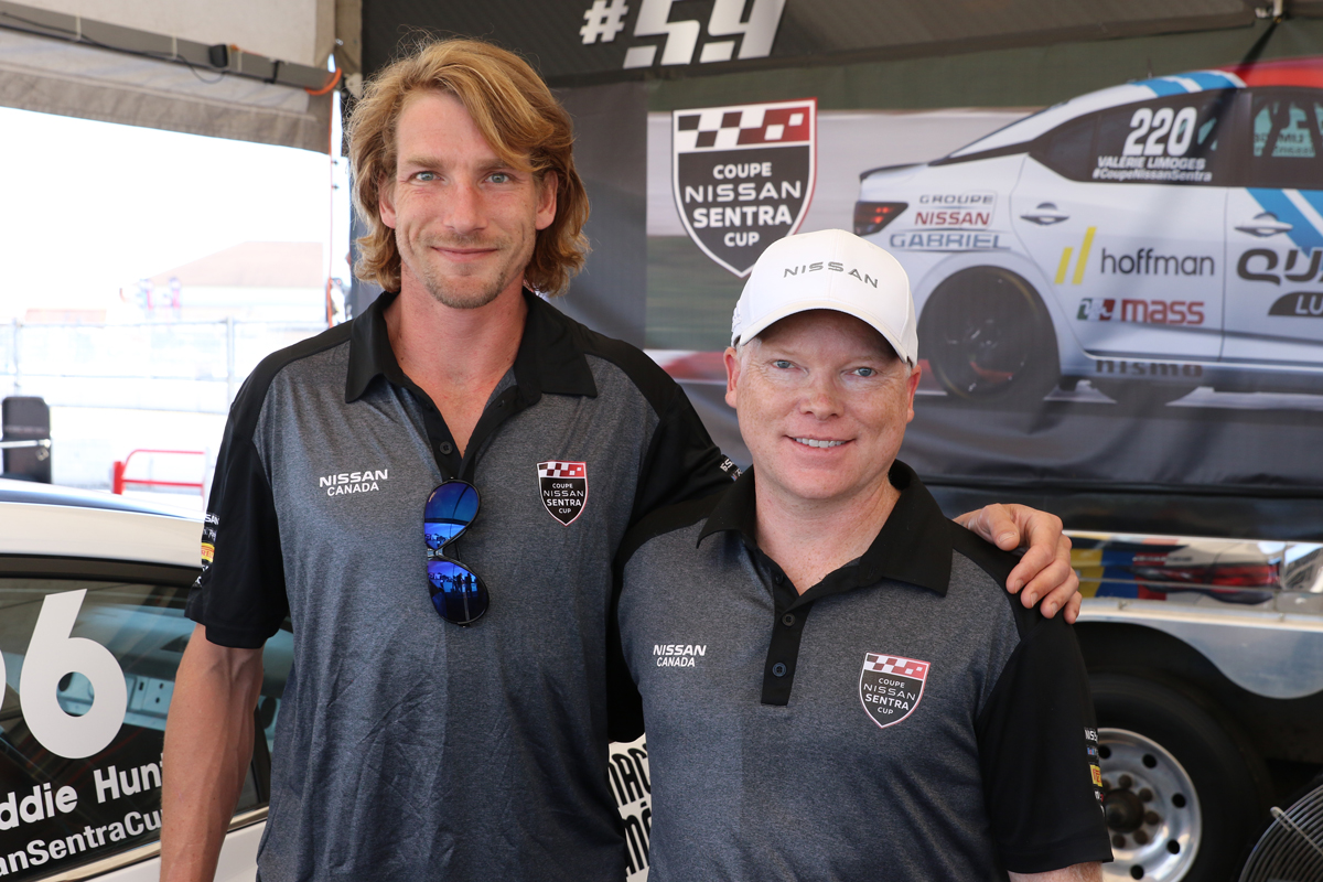 Freddie Hunt, le fils du champion du monde de Formule 1 en 1976, le légendaire James Hunt, a participé pour la première fois à la Coupe Nissan Sentra au Grand Prix de Trois-Rivières. Hunt, qui participe habituellement à la série Le Mans Cup en Europe au volant d’un prototype LMP3 à moteur Nissan, a fait ses débuts en Amérique du Nord, sur le site où son père avait concouru contre Gilles Villeneuve. C’était lors du Grand Prix de Trois-Rivières en 1976. James Hunt a terminé troisième et Gilles Villeneuve a remporté la course de Formule Atlantique. Pour célébrer la participation unique de son père à l’événement, Freddie Hunt a conduit la Nissan Sentra numéro 96, le numéro que son père avait lors de l’édition 1976. Ici avec Steve Milette, président de Nissan Canada.