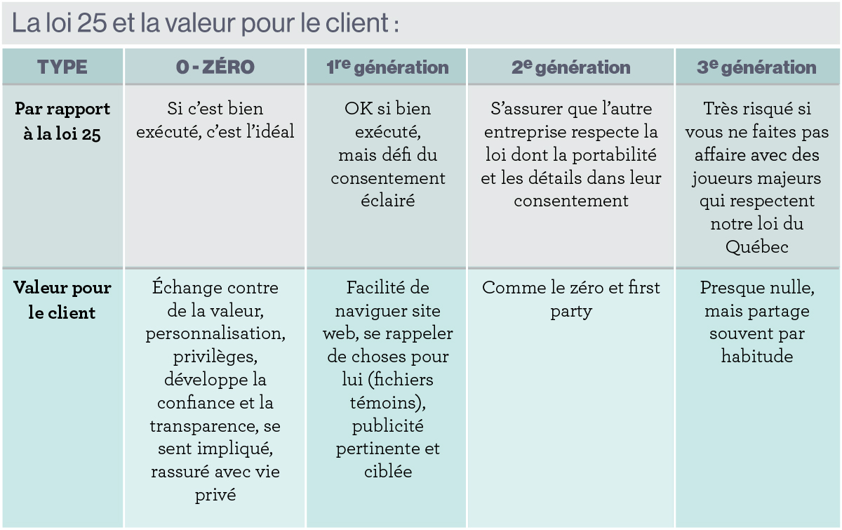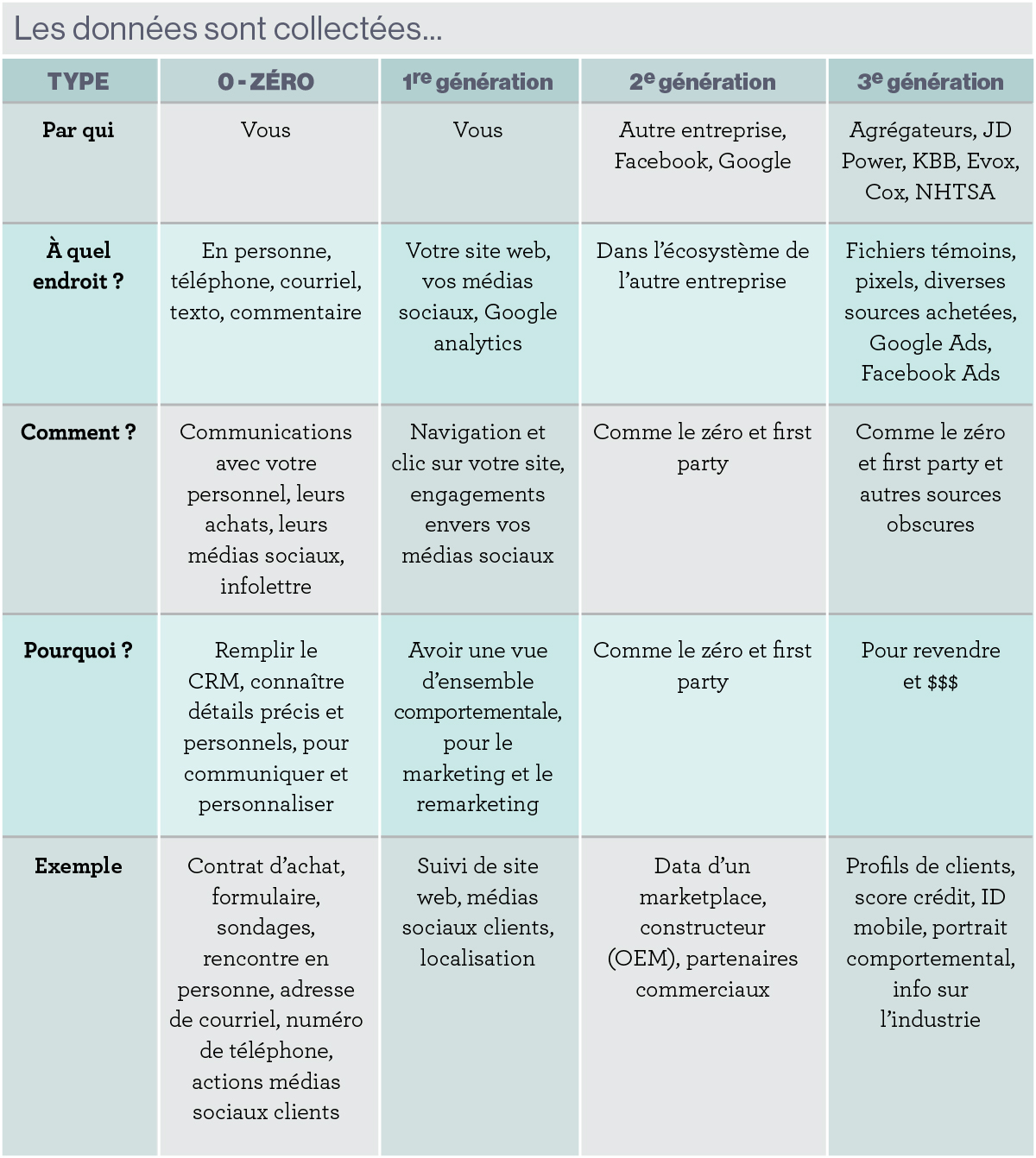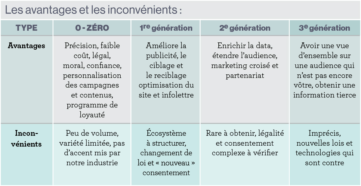 - Pourquoi devrait-on se fier aux données zéro et de 1re génération le plus possible.
