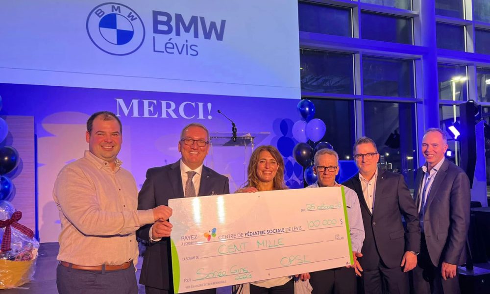 L’équipe de la concession automobile BMW Lévis est fière de soutenir le Centre de pédiatrie sociale de Lévis. Grâce à leur soirée Dégustation de Gins Québécois, une somme de 100 000 $ a été amassée.
