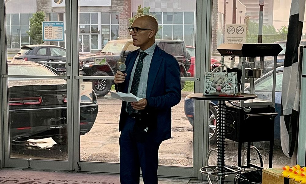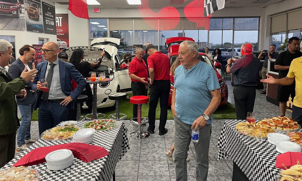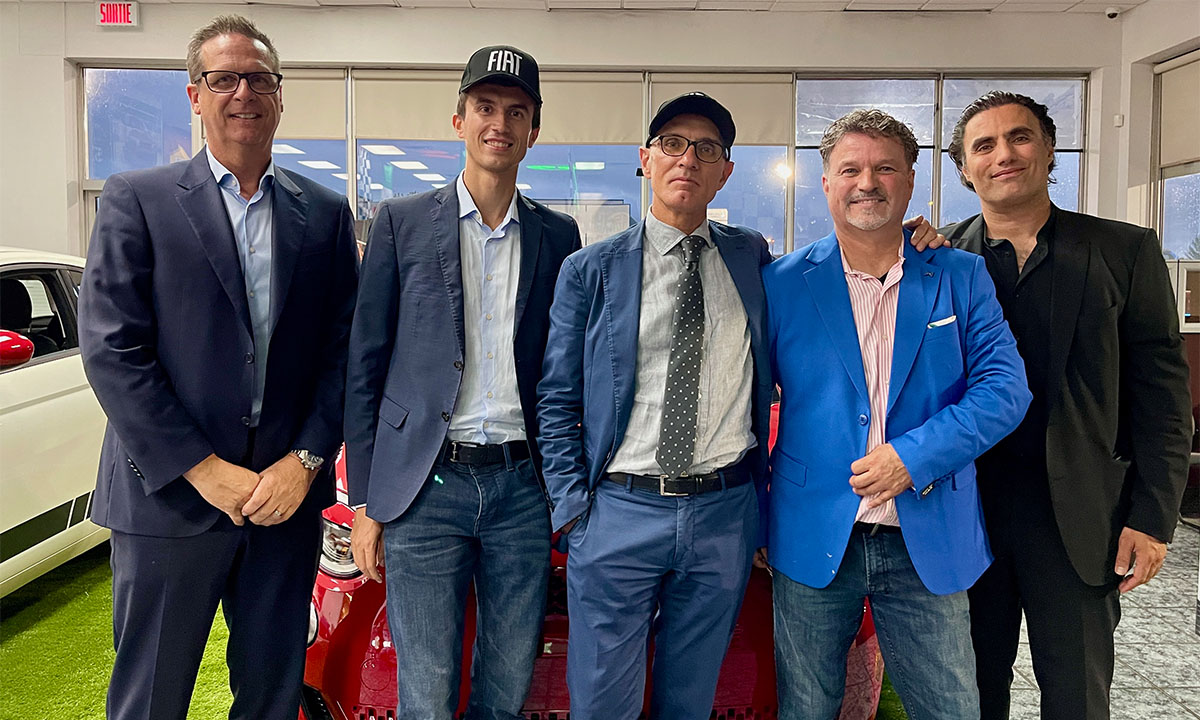 Guy Barbeau, AGA Services automobiles; Fortunato Mangiola, Consul Commercial d’Italie; Enrico Pavone, Consul général d’Italie; Eric Corso, copropriétaire, Vaudreuil Fiat Dodge Jeep Ram et Davide Foti, directeur développement des concessionnaires et marketing chez Stellantis
