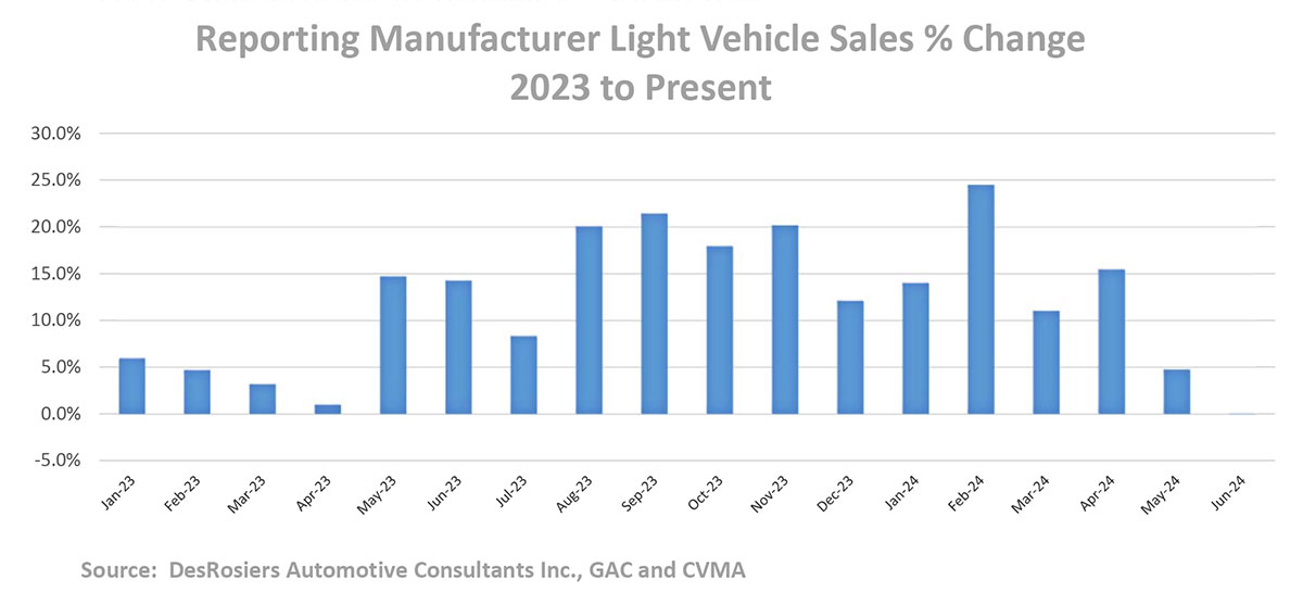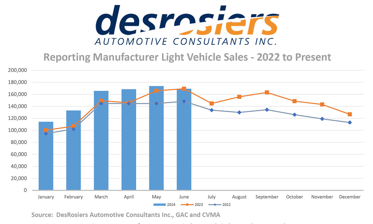 Selon Desrosiers Automotive Consultants [DAC], les ventes du mois dernier [juin] se sont élevées à 169 000, un chiffre loin de ce qu’on a vu dans la dernière année. Que s’est-il passé ? Évidemment, la panne du logiciel CDK a certainement eu un impact. Depuis le 19 juin, le processus de ventes chez un nombre important de revendeurs a été interrompu.