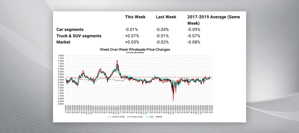 Pour la semaine se terminant le 12 avril 2025, l’équipe du Canadian Black Book (CBB) a fait son analyse concernant le marché canadien de gros des véhicules d’occasion. Et pour cette occasion précise, c’est une hausse de +0,03 % qui a été enregistrée.