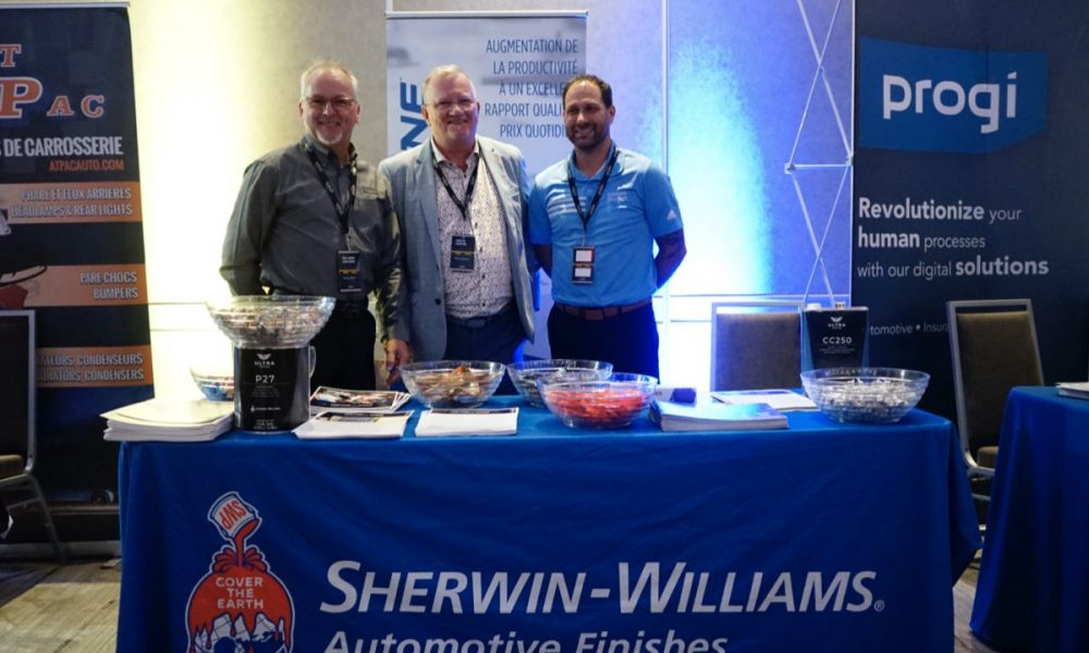 Mais d’abord, le congrès CarrXpert, soit la bannière de carrosserie de la Corporation des concessionnaires d’automobiles du Québec (CCAQ), débute toujours avec une première soirée dédiée aux partenaires. Les propriétaires des ateliers de carrosserie sont donc invités à venir découvrir et discuter avec les nombreux participants. On parle ici de distributeur de pièces, d’assureurs, d’entreprises de vitres d’auto, de peinture, etc. Une belle soirée teintée de quelques coquetels et de bouchées. L’équipe d’Affaires automobiles s’engage également à prendre chaque personne en photo et à les partager avec les entreprises présentes pour l’événement, mais qui soutiennent aussi l’industrie et un événement d’envergure comme celui-là.