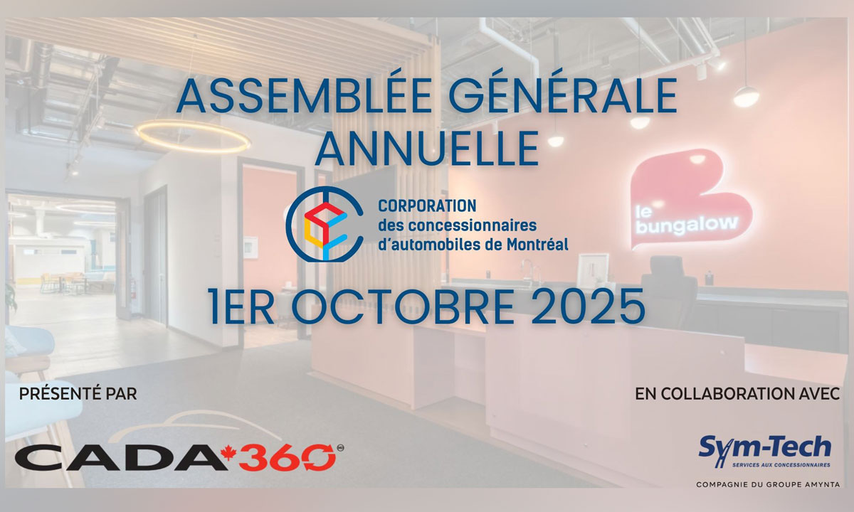 Le 1er octobre 2025, la Corporation des concessionnaires d’automobiles de Montréal (CCAM) tiendra son assemblée générale annuelle à l’espace le Bungalow à Montréal.