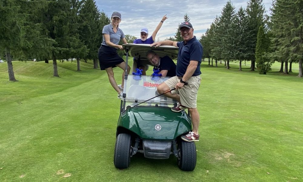 Les concessionnaires automobiles et de camions lourds membres de la Corporation, partenaires de l’industrie et fournisseurs ont répondu présents à cet événement qui a permis de clore les vacances d’été en beauté ! Les quelque 144 golfeurs ont pu non seulement jouer une partie de golf amicale, mais en plus, de profiter d’un parcours gourmand. Les participants ont pu goûter des produits de toute sorte, entre autres des entreprises CaramelsFAA, la Microbrasserie Charlevoix, la distillerie Arsenal & Co ainsi que de nombreux traiteurs comme Genco, La Cage, Le Bangard et même déguster un café de chez Kogi. Et tout cela après un dîner au bar à pâtes !