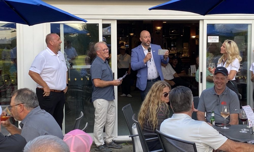 Pour terminer la journée en beauté, un cocktail était offert sur la terrasse de l’établissement et on a pu entendre quelques mots de Sébastien Bolduc, président de la Corporation Mobilis. Il en est de même pour M. Claude Plamondon qui a lui aussi remercié les gens de leur générosité, et d’ainsi contribuer au succès de la Fondation. Les dons permettent d’aider tant de personnes dans le besoin. Notons aussi un ajout de dernière minute de 2500 $ de la part de Sym-Tech Services aux concessionnaires, ce qui a fait grimper le montant de 91 000 $ à 93 500 $.