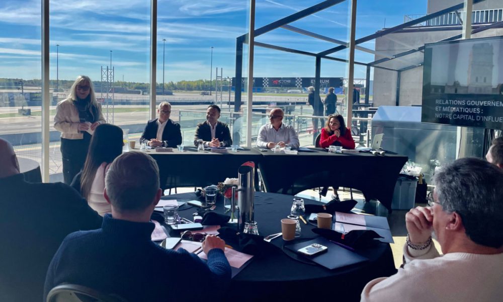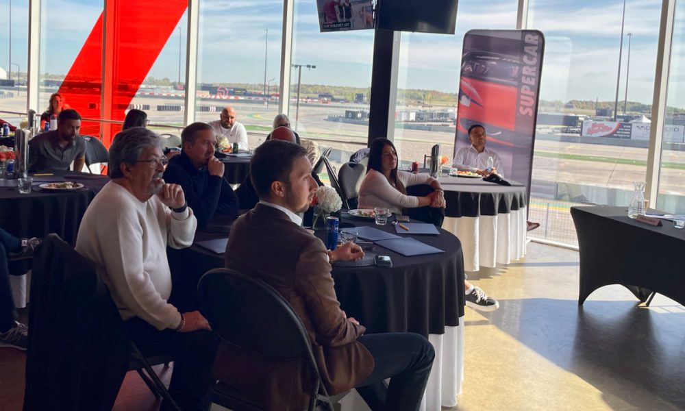C’est dans le magnifique bâtiment du Complexe ICAR, aux abords de la piste, que l’AGA de la CCALL a commencée avec un mot de William Vialle, lui qui en est à sa dernière participation en tant que président. Au programme il y avait l’AGA bien sûr, mais aussi l’Entre-deux Sommets de la CCAQ, des conférences de Otogo et de Noahvik Consultants et rien de moins qu’une expérience de conduite sur la piste avec des voitures exotiques des marques Ferrari, Lamborghini, Porsche et Chevrolet Corvette. Une trentaine de concessionnaires de la région étaient sur place, dont plusieurs représentants de groupes de concessionnaires qui représentaient plus de 65 concessionnaires à travers le Québec. Au total, 51 personnes étaient présentes.