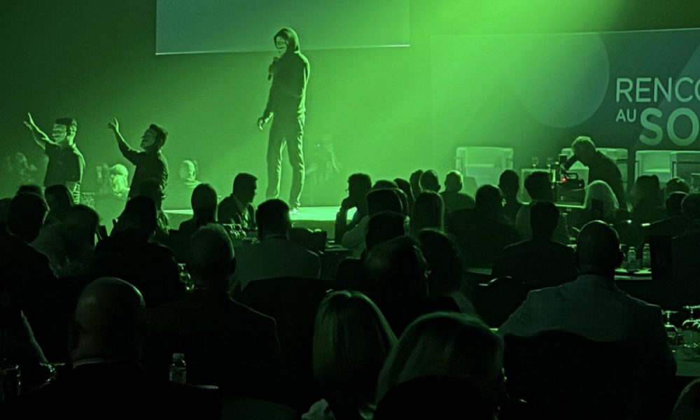 La grande salle du Manège militaire Voltigeurs de Québec s’est vue transformée pour l’ouverture de la Rencontre au Sommet 2025. Il faut dire que l’introduction fût particulièrement étonnante. Plongé dans l’obscurité, lumière verte, personnages masqués, un signe de protestation et de résistance qui nous rappelle les Anonynmus. Pourquoi ? Pour soulever ce malaise que ressent en ce moment l’industrie. Voilà pourquoi ce sommet est d’une grande importance. Se réunir, discuter, trouver des solutions et avancer.