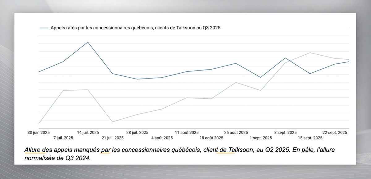 Le troisième trimestre de 2025 confirme la vigueur du marché automobile québécois, malgré un léger ralentissement des ventes de véhicules neufs en août. Ce maintien de la demande s’est traduit par un volume d’appels ratés toujours élevé dans les concessionnaires québécois et les chiffres montrent que les appels manqués continuent de représenter une source importante de pertes d’opportunités commerciales.