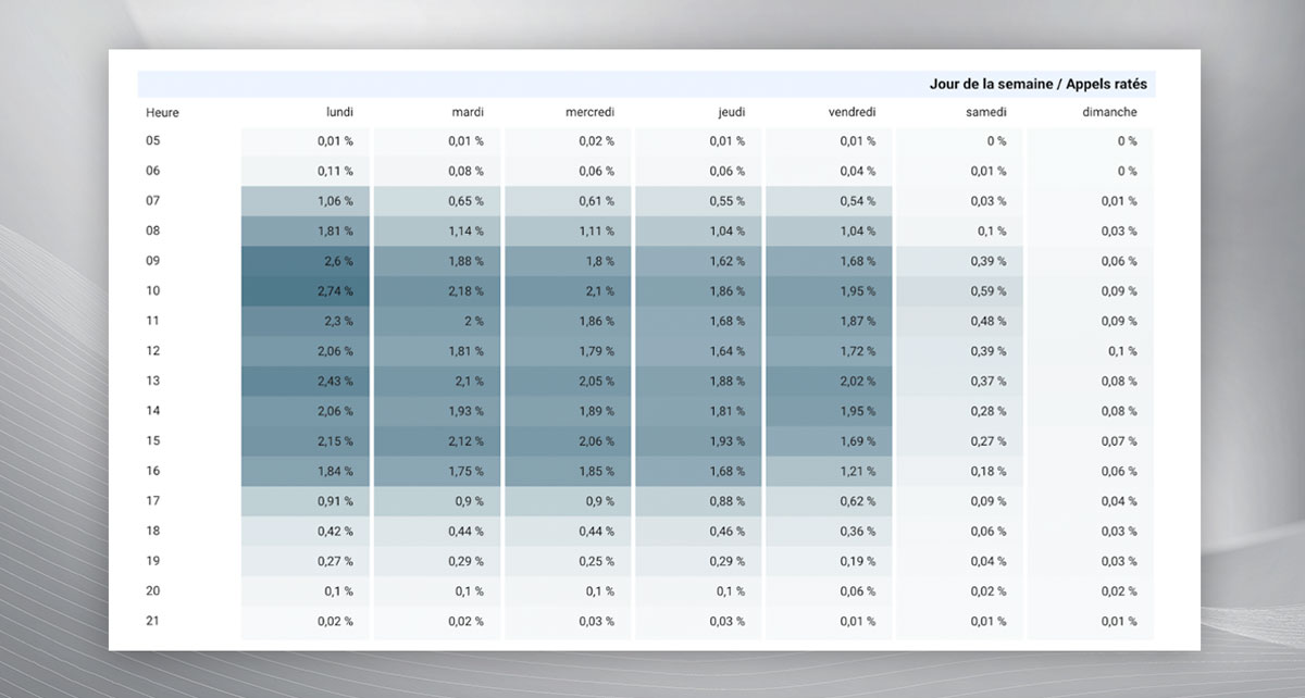 Environ 25 % des appels manqués ont lieu en dehors des heures normales d’opération, soit avant 8 h ou après 17 h du lundi au vendredi. Ces appels représentent une part importante d’occasions perdues, souvent de la part de clients motivés qui cherchent à joindre la concession en dehors des heures de travail.