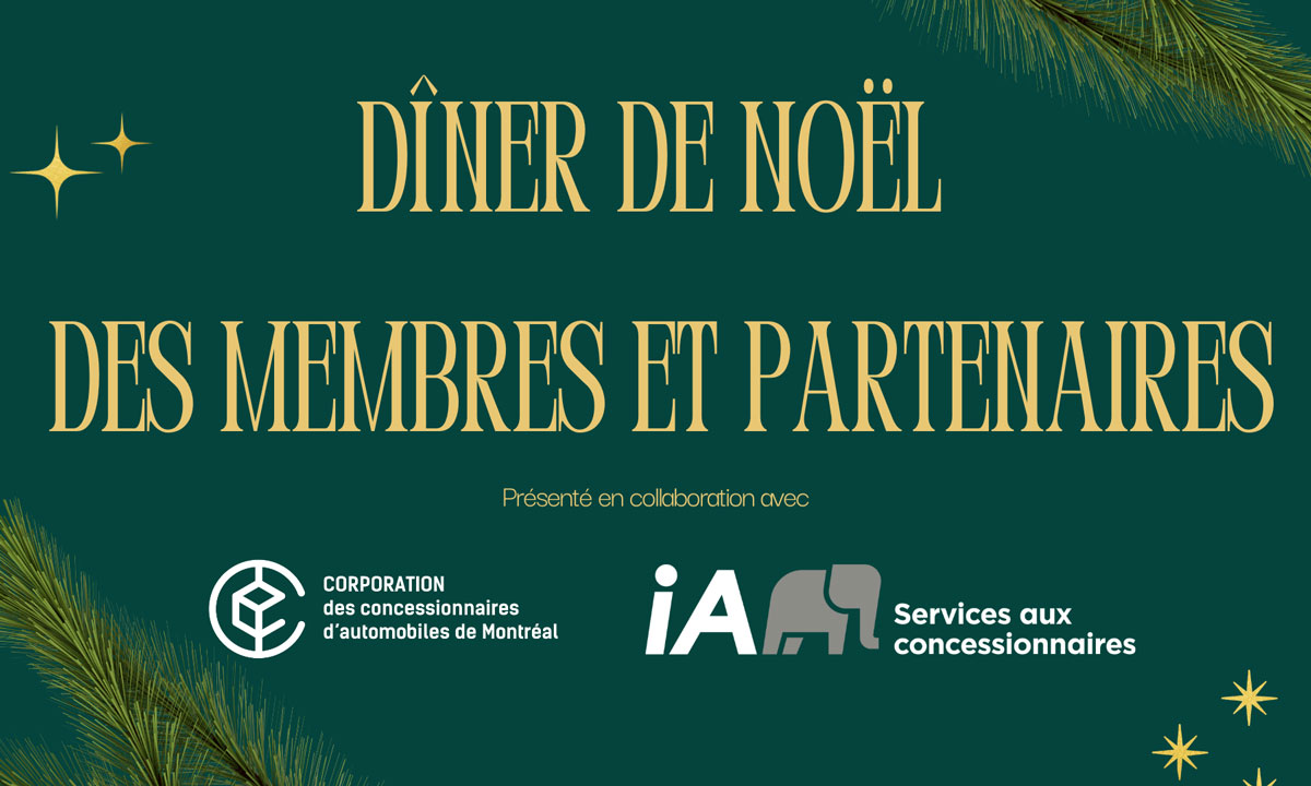 L’équipe de la Corporation des concessionnaires d’automobiles de Montréal (CCAM) convie chaque année ses membres et partenaires à un magnifique dîner de Noël. La date de cet événement est-elle réservée à votre agenda ?