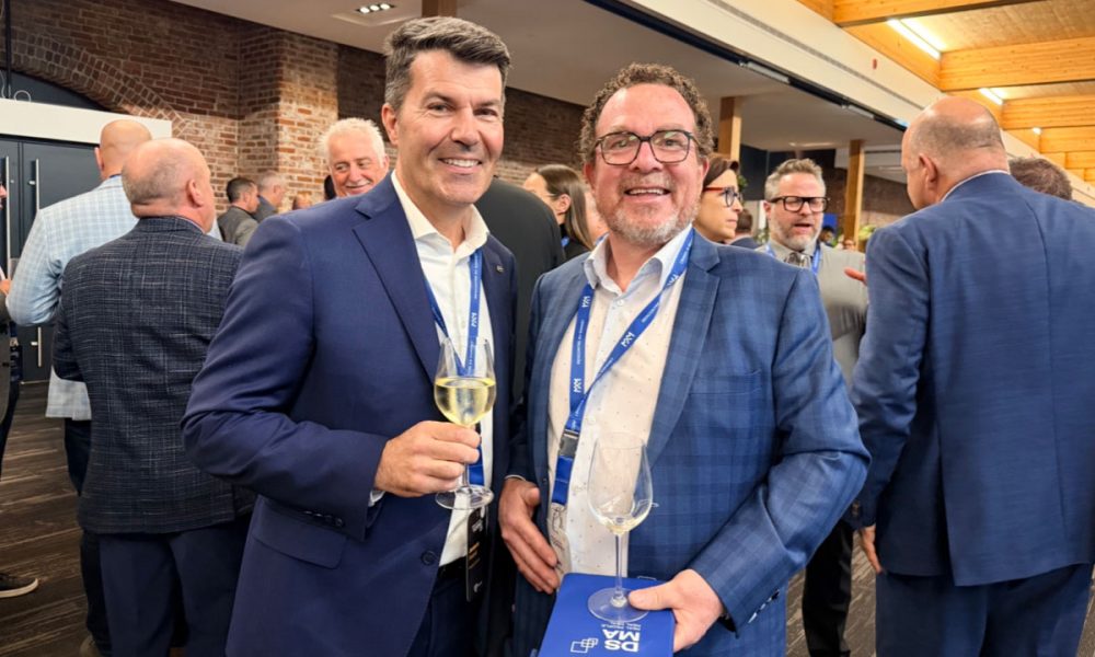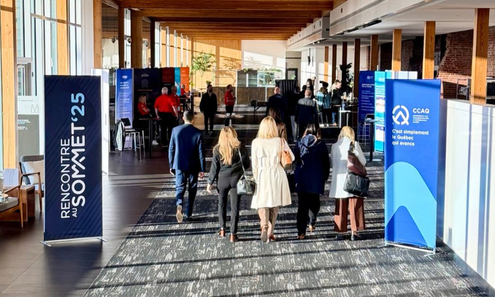 La grande salle du Manège militaire Voltigeurs de Québec s’est vue métamorphosée pour l’ouverture de la Rencontre au Sommet 2025. Il faut dire que l’introduction a été particulièrement étonnante, puisque plongée dans l’obscurité, avec lumière verte, personnages masqués, un signe de protestation et de résistance qui nous rappelle les Anonymous. Pourquoi ? Pour soulever ce malaise que ressent en ce moment l’industrie. Voilà pourquoi ce sommet est d’une grande importance. Se réunir, discuter, trouver des solutions et avancer.